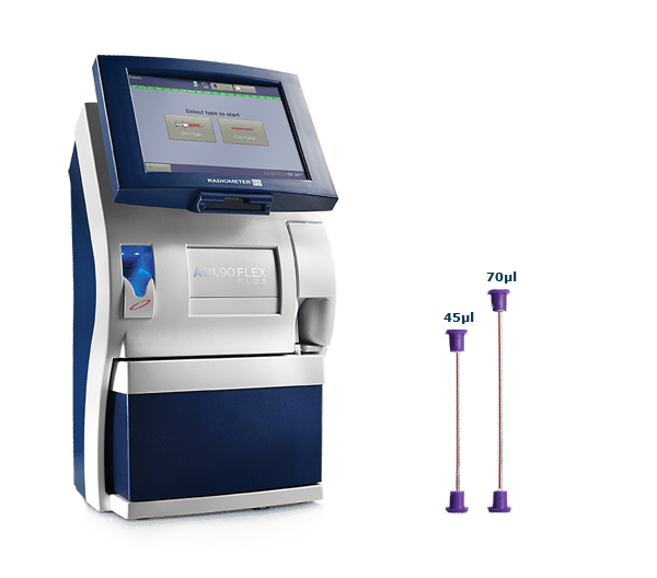 ABL90 FLEX PLUS: pH | pCO2 | pO2 | cGlu | cLac | cCrea | cUrea | cCa2+ | cCl- | cK+ | cNa+ | FCOHb | ctBil | ctHb | FHbF | FHHb | FMetHb | sO2 | FO2Hb